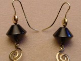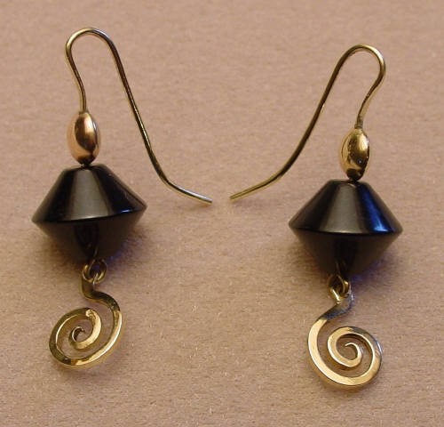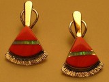 7) 14kt gold inlaid "Fan-shaped" earrings