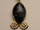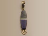 14kt gold pendant with lightening bail. Set with petersite. Dim. 2 1/8 inches (lg) x 3/4 inch (wi).