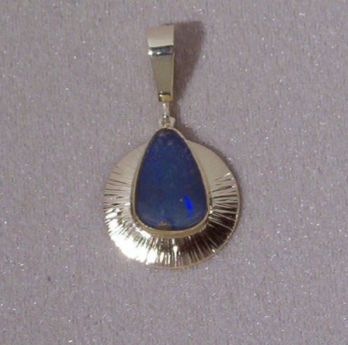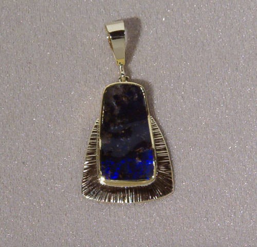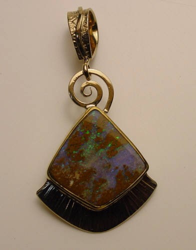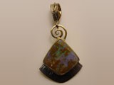 Pendant set with boulder opal. Dim. 2 1/8 inches (lg) x 1 inch (wi).