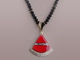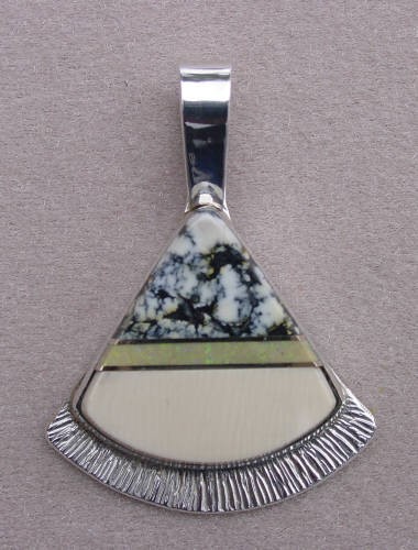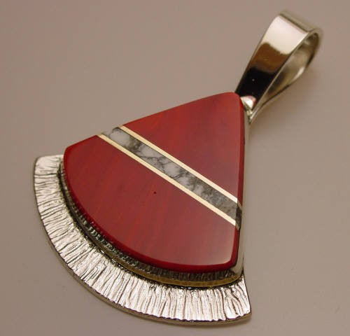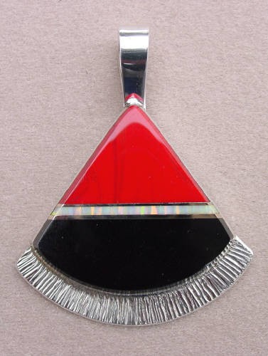 10) Sterling silver inlaid fan shaped pendant