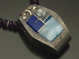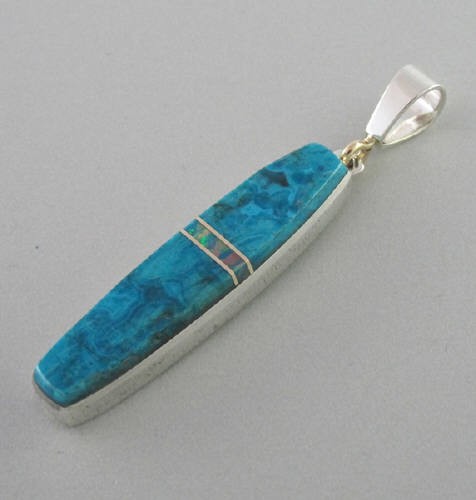 Pendant inlaid with chrysicola, opal, and 14k gold