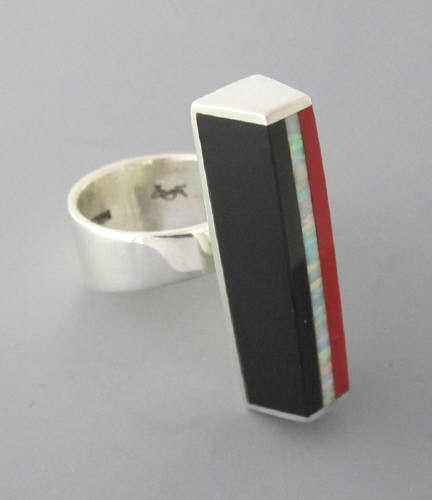 Inlaid with arizona zebra stone, black jade, turquois, and 14kt gold