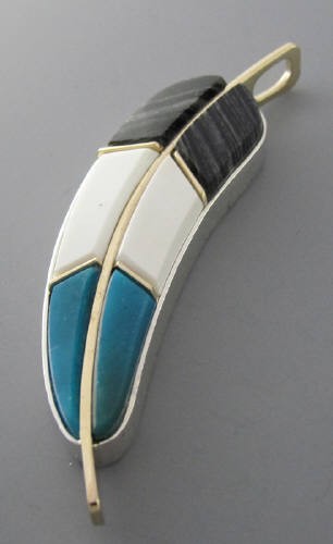 43) Sterling Silver inlaid "Feather" Pendant