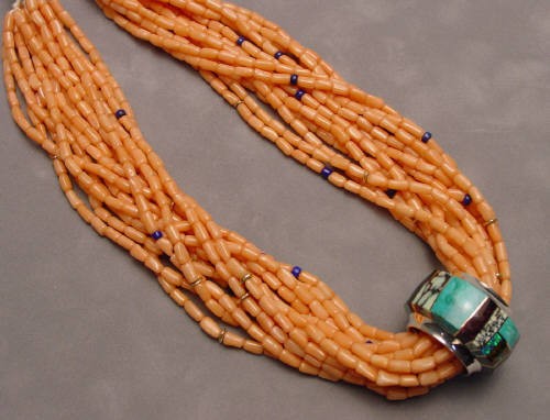 Inlaid with rosarita, oriental turquois, and 14kt gold