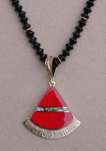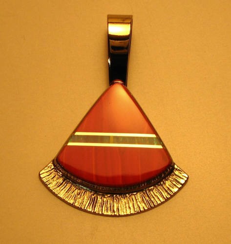 11) 14kt gold inlaid "Fan-Shaped" pendant