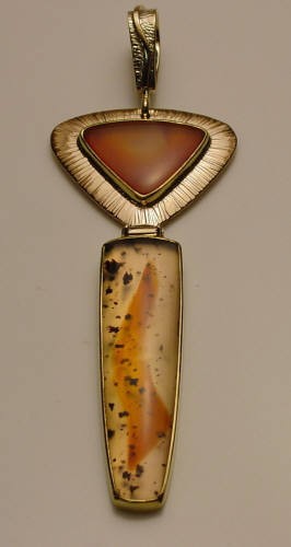 Pendant set with carnelian and montana agate.