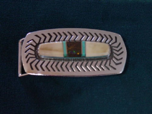 Inlaid with fossilized ivory, opalized iron-stone, and gem silica.