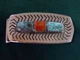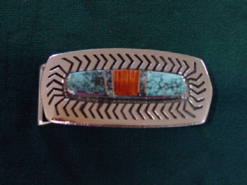 Inlaid with spiny oyster, calkacydirite, and chinese turquoise.