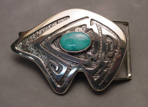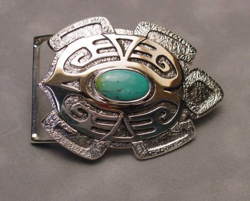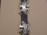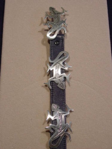 This is a concho style belt, each of the sterling silver overlay lizards are movable for a custom fit.