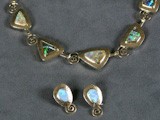 9) 14kt gold reverse side of #8, inlaid necklace with earrings
