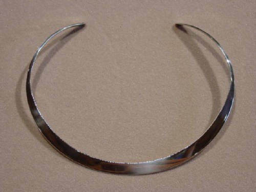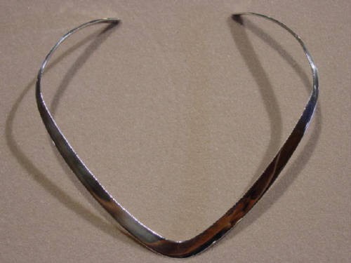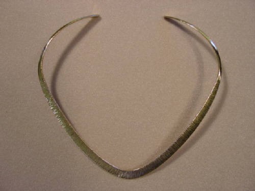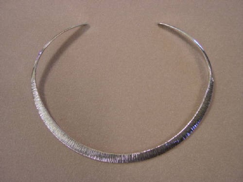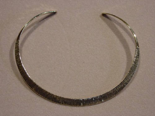 Sterling silver, hand forged with hammered texture. For those individuals looking for a neck accent with an extraordinary contemporary look.