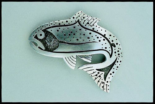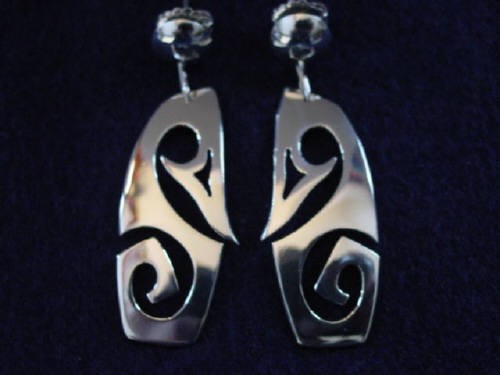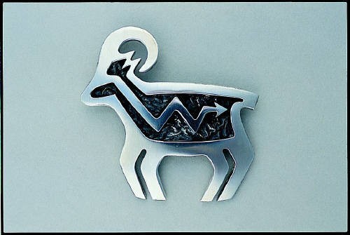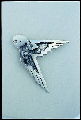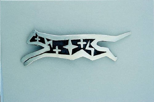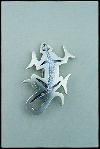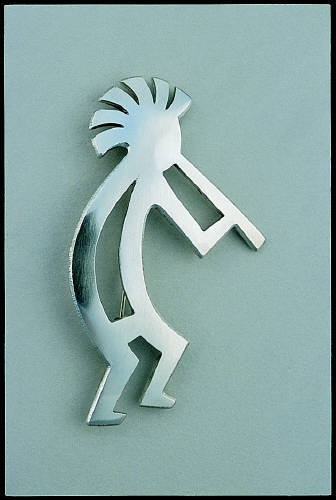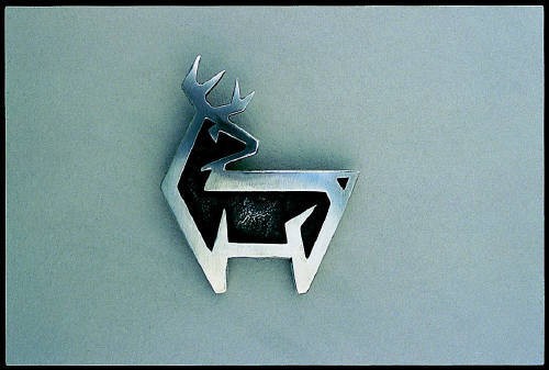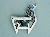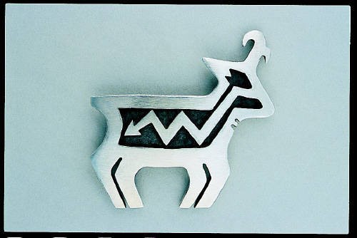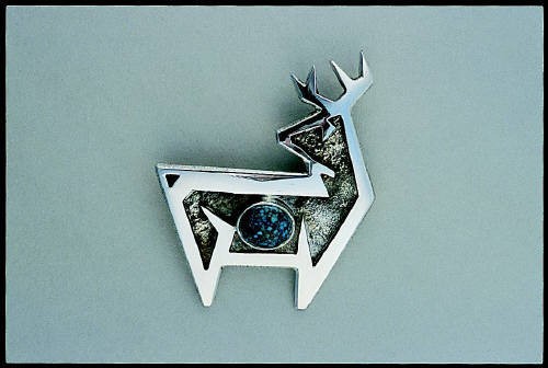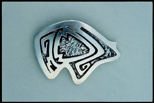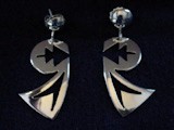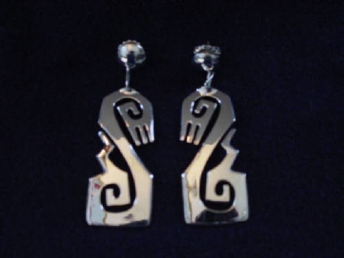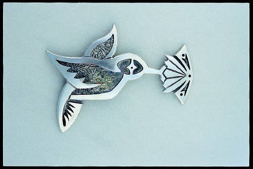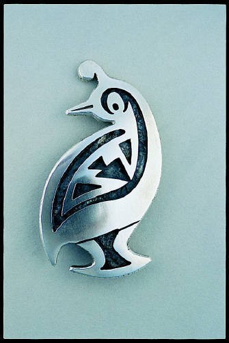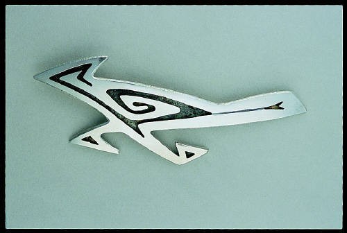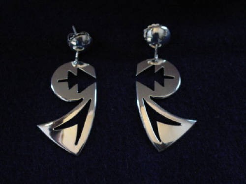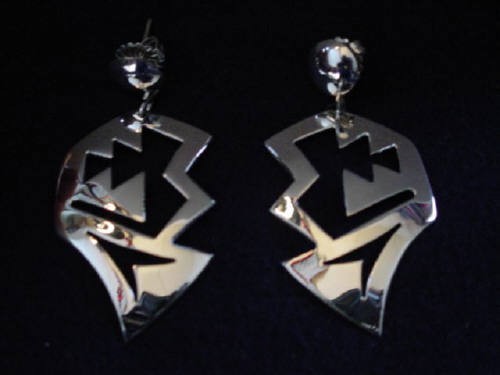 The collection contains a line of individually hand-made sterling silver earrings and overlay pins from Duane's Pueblo V Deco design portfolio.