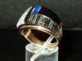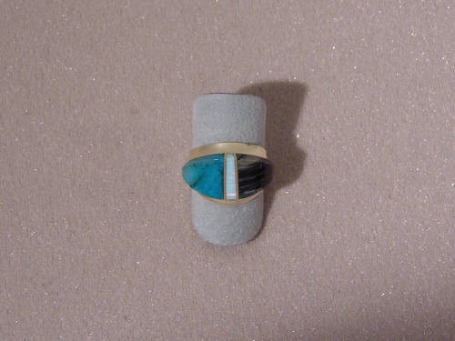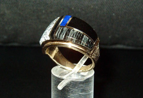 Inlaid with calkacyderite, black jade, lapis, arizona zebra stone, and 14kt gold