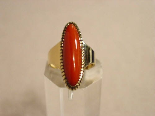 14ktgold ring- bezel setting with red coral.(image pictured size 6)specify ring size when ordering.