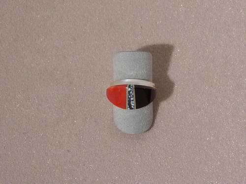 Inlaid with rosarita, opal, black jade, and 14kt gold